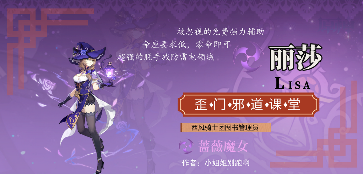 ·满足充能且低命座的前提下,在四星挂雷工具人中,丽莎的总挂雷时间是最长,间隔最短,范围最大的,且操作也很简易