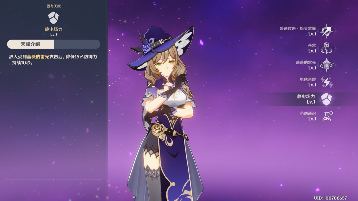 ·在丽莎完成60级突破并解锁了固有天赋2「静电场力」后,其元素爆发【蔷薇的雷光】命中敌人时,可减少敌人15%的防御力,持续10秒