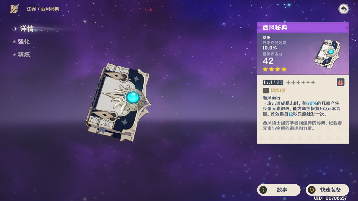 ·由于西风暴击产生能量球的特殊性,加上西风副词条为元素充能效率,这可以极大满足丽莎80元素能量所需