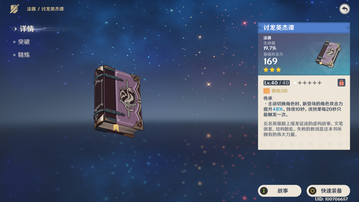 ·在丽莎释放元素爆发后,能够为全队提供20%的攻击力加成,增强丽莎的辅助能力,配合「静电场力」减防debuff,提升效果大于1+1