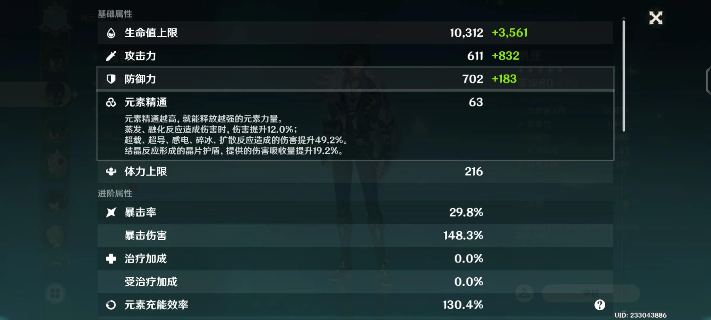 我的凯亚佩戴的是四冰套,这样也就在冻结也就是大多状态下增加了40%的暴击率,因此对暴击率的面板要求不高。
