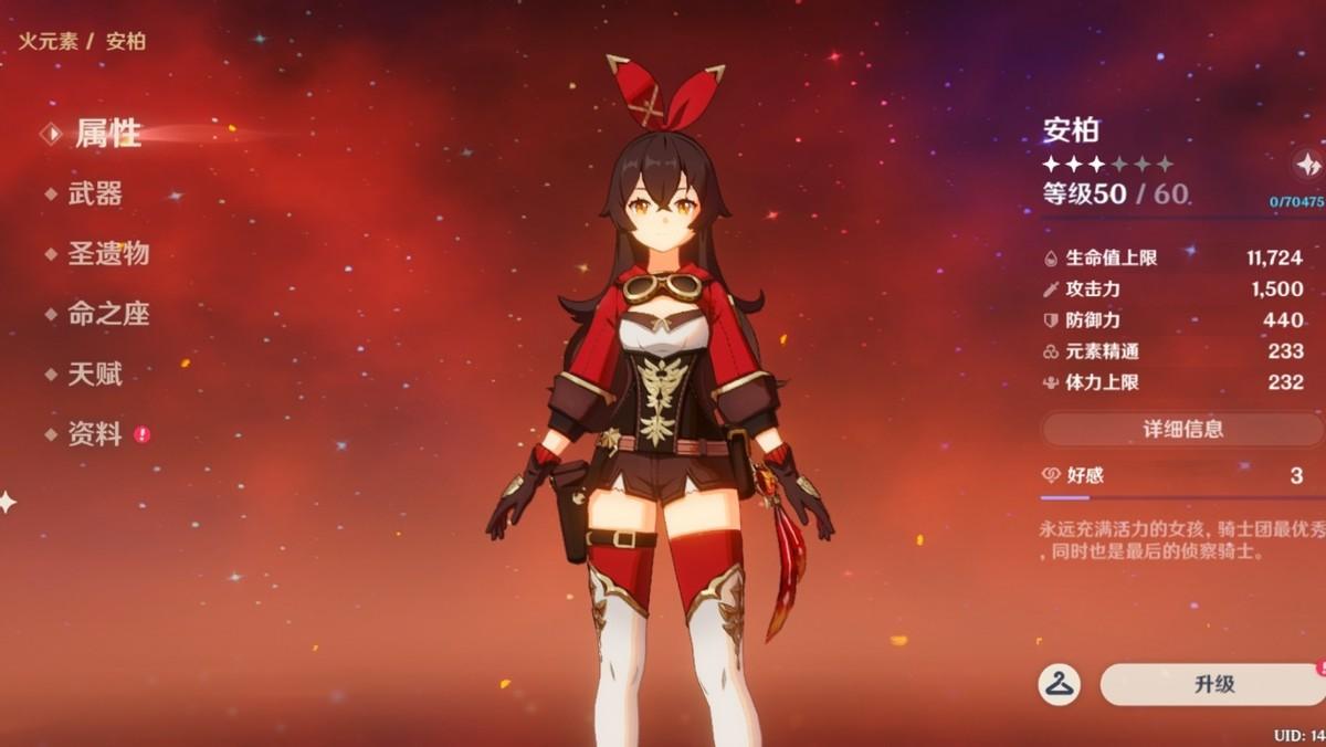 首先,安柏是火属性,容易凑双火共鸣,25%攻击力提升,对缺少遗物的新手有莫大帮助,以此为前提的安柏不需要提升等级。针对深渊法师的破盾,可能新手期会有些压力,安柏的多段火元素有奇效。以此会推荐安柏有对应世界等级的最低等级要求,和充能武器/遗物,大概150-160%充能就好,很多新手或许担心角色培养太浪费资源,其实这是很大的误区,下面我从1级的安柏开始来算培养成型要花的资源。