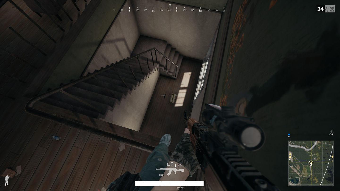 这时候可以选择把所有搜过的房子门都关起来,假装没有人来过,苟住!用急救包或则饮料等“钓鱼”。像下面这种带厨房的二层房子就很适合钓鱼!十分带感!(这个位置如果是第三人称会看不到瞄准点,可以按V切换到第一视角)