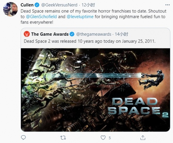 网友“Cullen”:《死亡空间》仍然是至今我最喜欢的恐怖系列之一。感谢@GlenSchofield和Leveluptime给世界各地的粉丝带来噩梦般的乐趣!