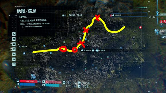 建议大家开摩托,速度快些。前两个红叉是容易躲避的BT,第一个开摩托的时候注意靠右开。第一个红圈前有一条石头阻挡,注意不要被档停了,停了也别慌,后面两个BT速度很慢。到了第一个红圈的位置,有两个BT挡在路口,掏出血液炸弹来一发。上车到第二个红圈区域,同样是两个BT挡在路口,用血液炸弹处理,后面就可以加速通过了。