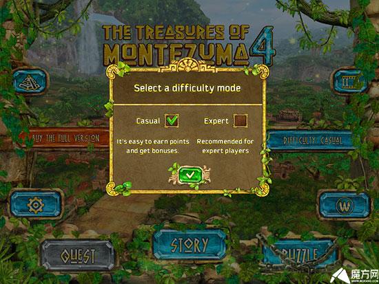 在安装好数据包之后,一段华丽的剧情动画会自动播放,然后便是由玩家来自己选择游戏难度。这次的《蒙特祖玛的宝藏4》共提供了2个不同的难度——“一般”和“专家”。如果只是作为休闲游戏来玩的话,建议选择一般难度,而对于喜欢挑战自己的高手来说,可能专家难度才是他们最终的归宿。
