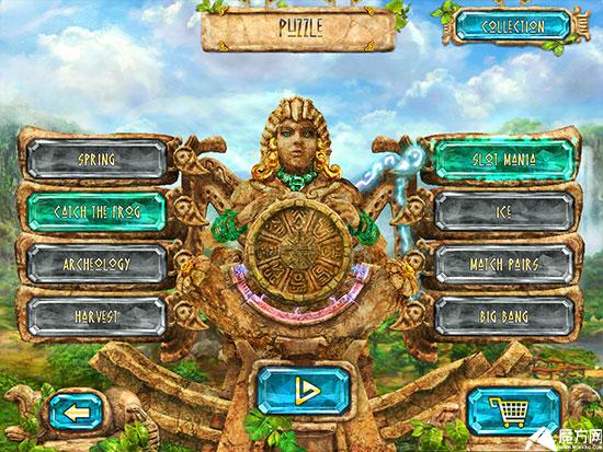在解谜模式被解锁之后,我们可以在此模式下直接挑战各种特殊关卡。包括上面介绍过的抓青蛙和Slot模式在内,《蒙特祖玛的宝藏4》共有8种不同的解谜关卡供玩家选择。但免费版里面暂时只开放了1座雕像和2种特殊关卡,更多的游戏内容需要付费解锁完整版游戏之后才能够体验到。