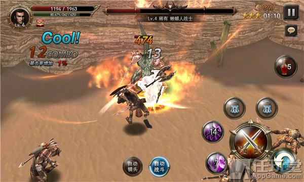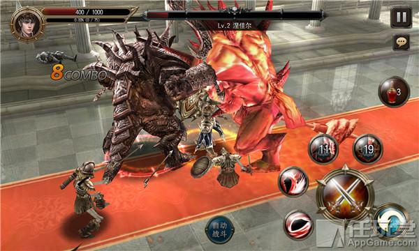 本作的操作模式采用动作游戏的标配设计:虚拟方向摇杆和技能虚拟按键,熟悉的按键决定了玩家能够快速上手。在此基础上,游戏加入了半自动(技能需手动施放)和全自动两种战斗模式,这样的设定可以看作有两大好处:一是方便玩家单手操作,二是保证玩家在忙时也可以挂机战斗。由此可以看得出,本作对于玩家操作的要求并不算高,颇有轻度战斗的意味。