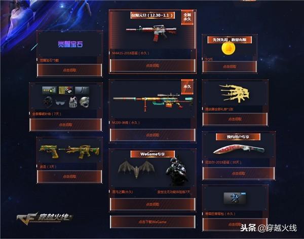 1月1日新十年即将开启,超多强力永久武器道具免费送,M4A1-破空冰刃、永久救世主、终身防弹衣+防弹头盔等待玩家收入囊中,CF将与玩家携手同行再战十年!