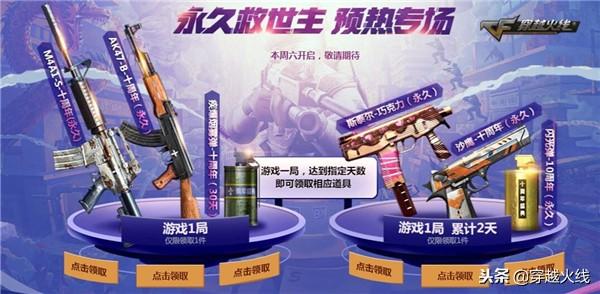 在1月1日新十年开启之前,游戏就已开启了新十年预热专场,玩家游戏一局即可在AK47-B-十周年(永久)、M4A1-S-十周年(永久)及疾爆烟雾弹-十周年(30天)选择一件心仪道具领取。玩家游戏一局累计两天则可选择斯泰尔-巧克力(永久)、沙鹰-十周年(永久)及闪光弹-十周年(永久)中的一件武器领取!开启游戏得好礼,如此福利千万不能错过!