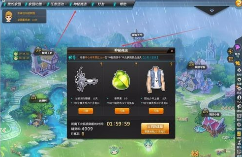 点击在上方列表里的那个神秘商店,这样我们就进入个精灵世界的神秘商店界面。在这个方面滞留的人会比原本的精灵世界人少,可以进一步增高成功率!