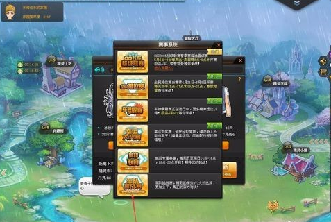 点击左下角的那个圆圈,然后找到多人游戏列表里的赛事系统。点开它,如果你不知道怎么找,仔细看一下我配的图。一定可以找得到的。
