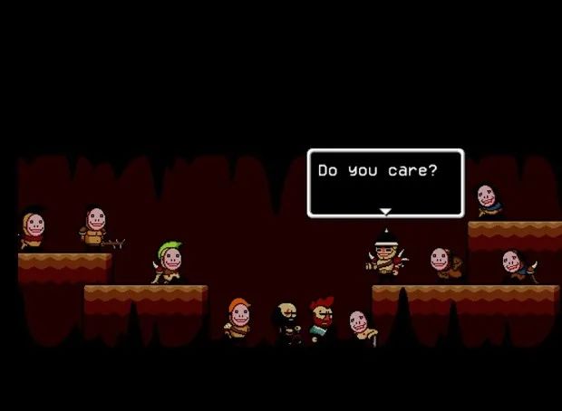 如果只是牺牲资源和选择牺牲者,那LISA的抉择断然算不上艰难,只能说恶心。但是有些时候,这些抉择是在游戏的紧张时刻做出的,当你面对牺牲一位队友和快速通过的抉择时 Buddy 可能离 Brad 只有几英尺远,它们往往游戏中最困难的选择。