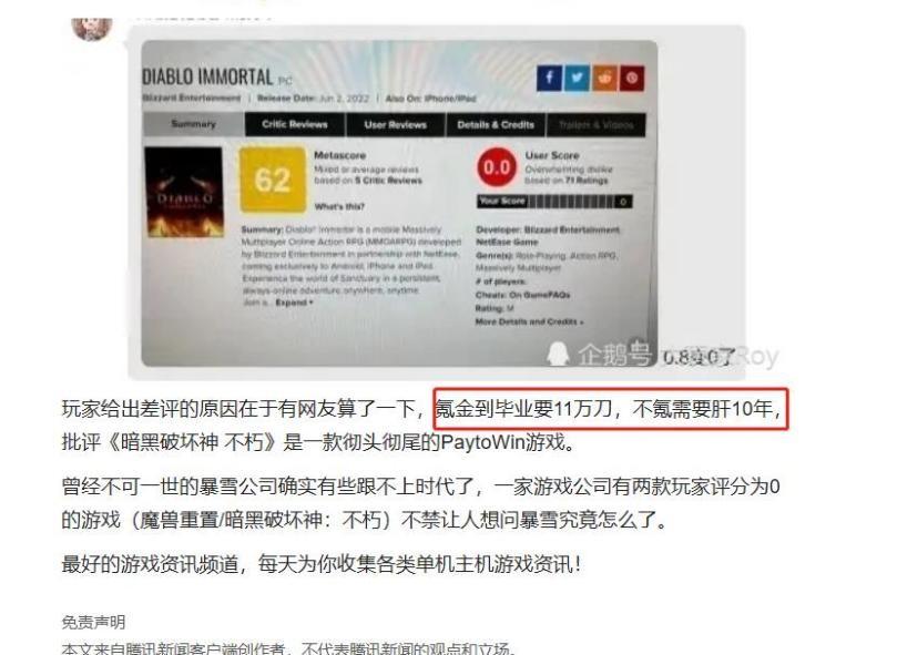 网易暗黑3手游风评详情(暗黑3手游评分很低吗)