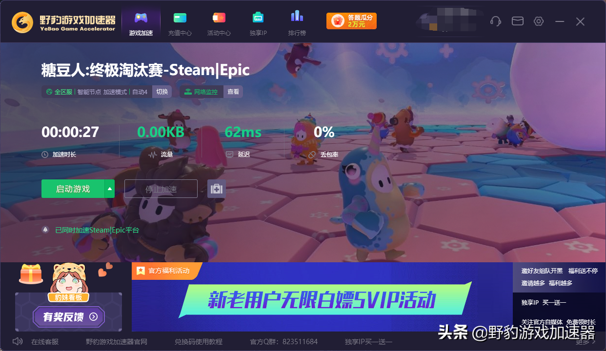 2.再使用加速器对游戏开启加速,推荐野豹游戏加速器给大家,野豹可以有效对网络进行优化加速,解决游戏登录错误、网络问题、卡加载等问题。