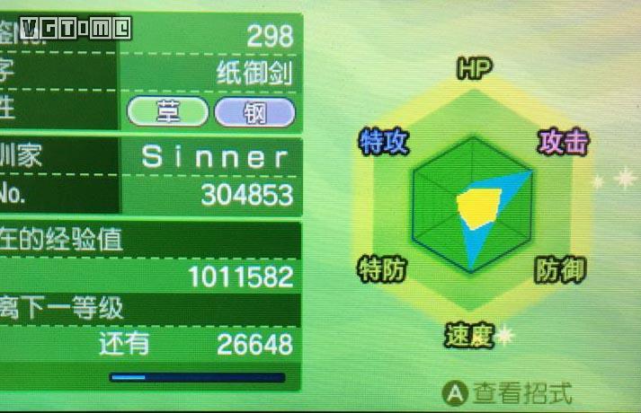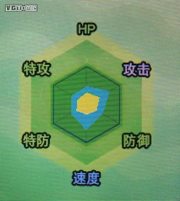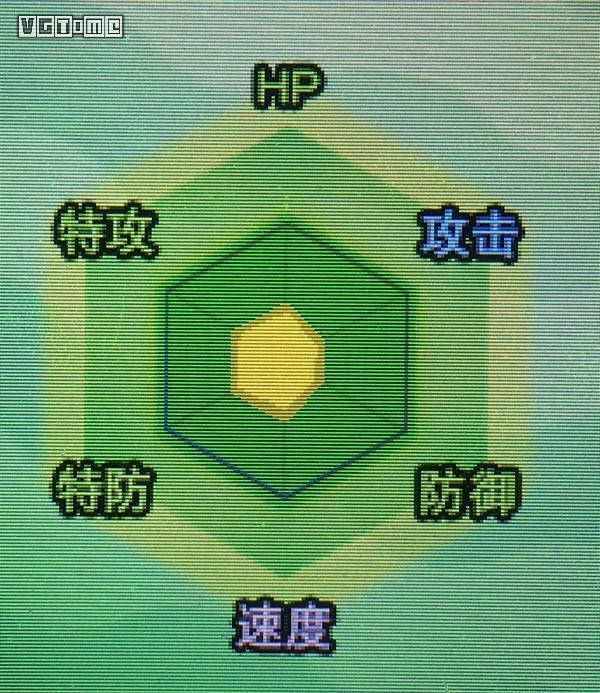 查看努力值的方法是在查看宝可梦能力中,按下Y键,图表中黄色不透明的部分是宝可梦当前的能力值,然后周围会有浅色半透明的一圈,那就是努力值的分布,具体会有下面三种情况: