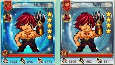 一张是楼主自己的,没上孙权的银周泰(左);一张是同区的普通周泰(右),但是上了孙权。蛋疼中……