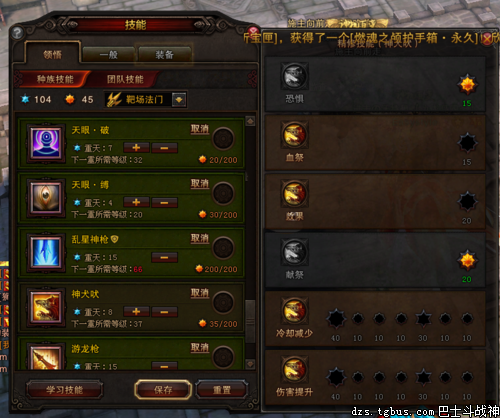 最后说一下领悟的点法是乱星、游龙、铁山优先加满。其他技能最少是像我这样点。点完多出来的,点到旋风腿和天眼缚。
