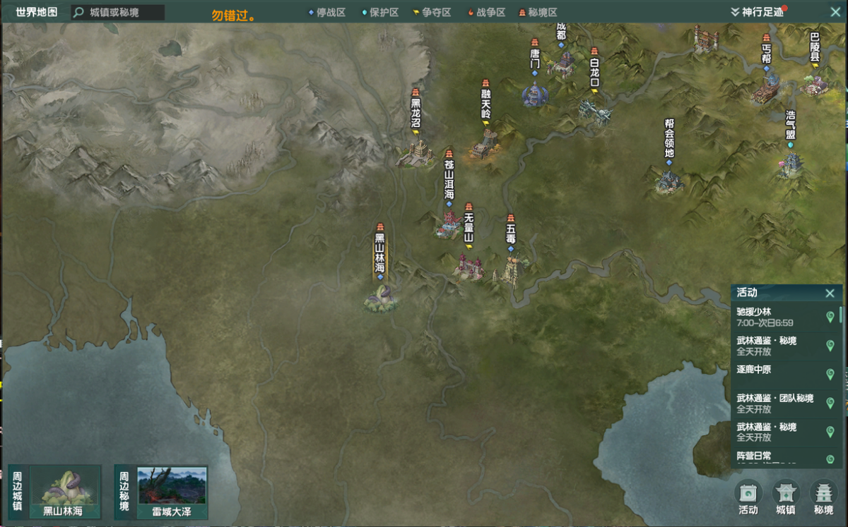 答:“北天药宗”赛季的主流本是位于黑山林海的雷域大泽,想要前去挑战的侠士们注意不要迷路。