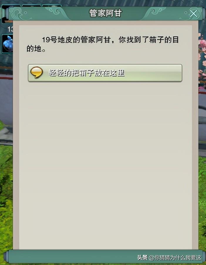 家园“传信邻里间”任务就是接取快递,然后送到那号人家门口的阿甘