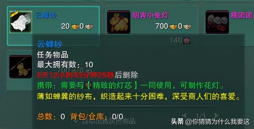 放花灯的任务我们可以直接找到之前的npc购买3个云蝉沙