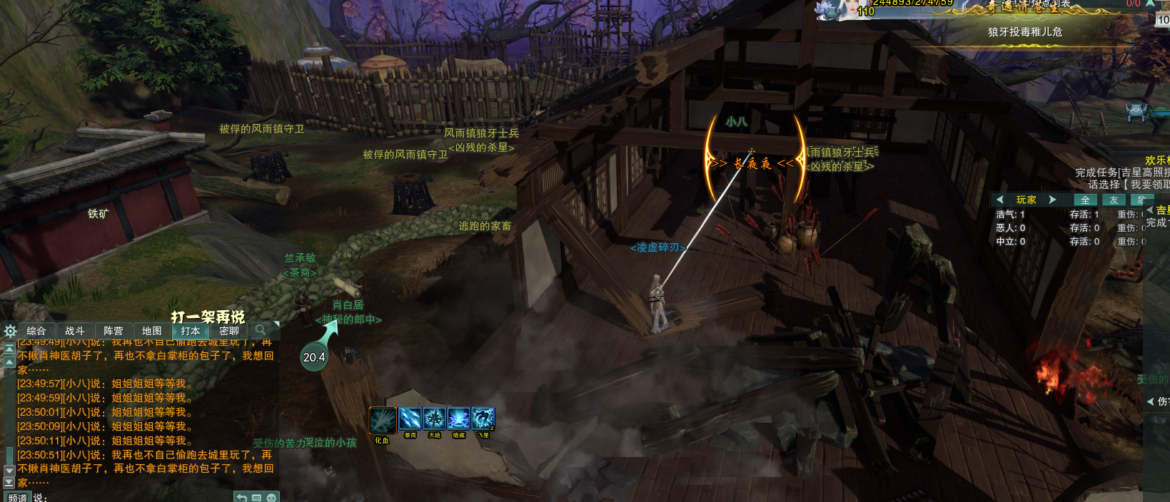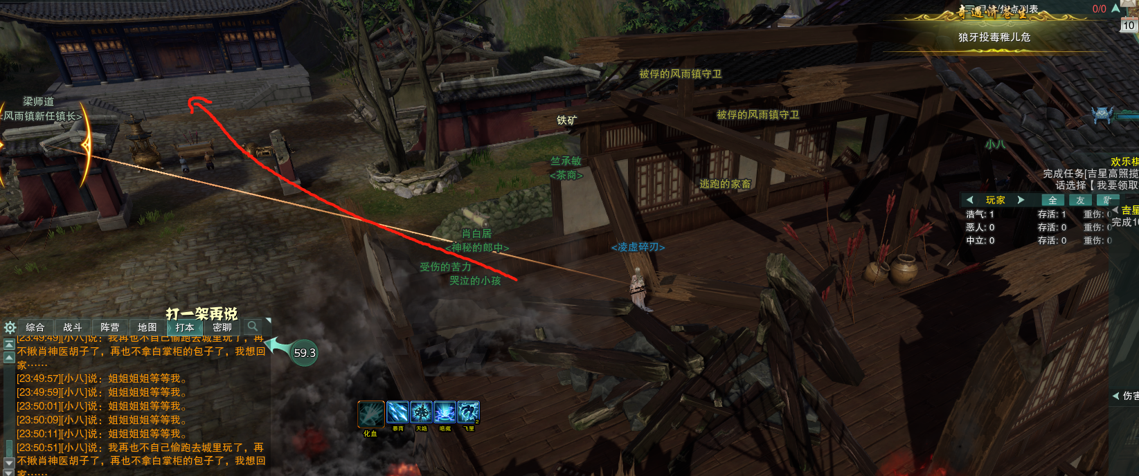 去找旁边的NPC【刘王氏】对话,还有风雨镇镇民、老太太,一共三个。