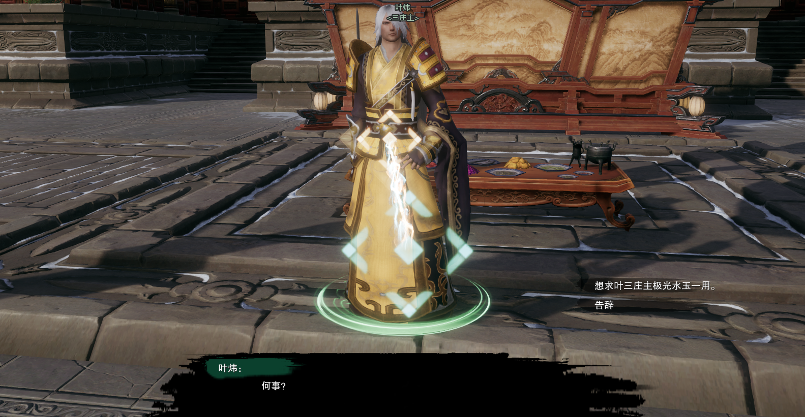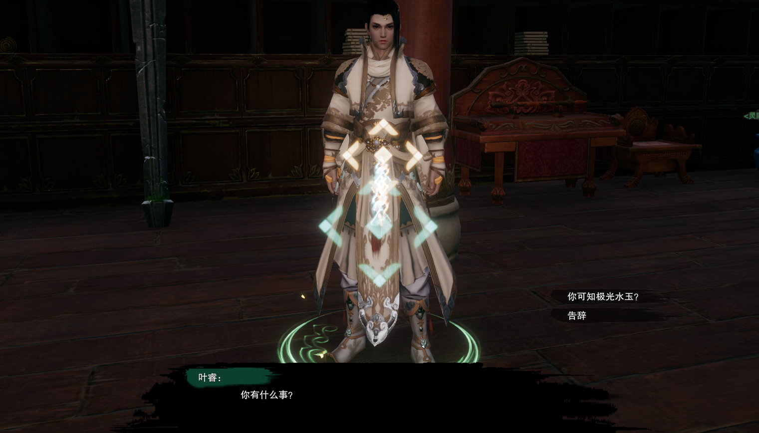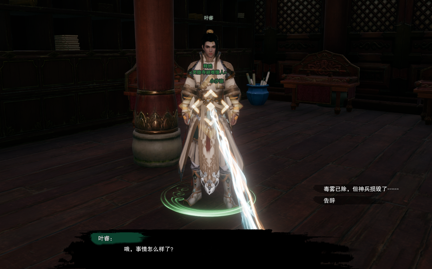 肖白居让我们去茶馆找赵云睿,对话完成之后,我们返回藏剑山庄找【叶睿】。