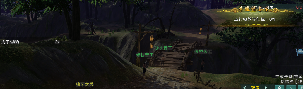 去刚刚捡草的桥头【修桥苦工】那里使用相思剑,把出来的怪打掉。