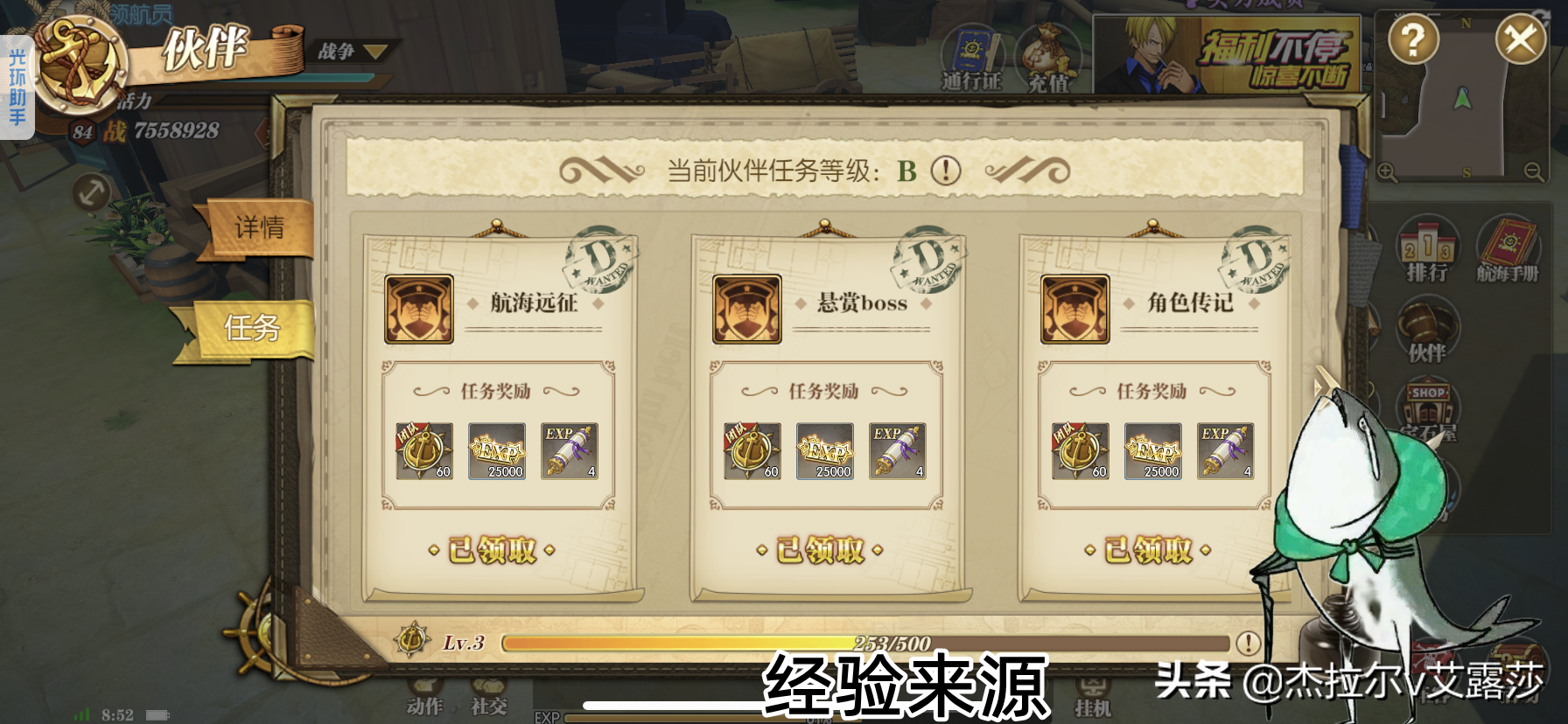 新区28天基本任务:每天任务做完,保底20抽自选鹰眼,竞技场兑换黄猿与金魂,采药做到属性药后可自己做船。卷子继续保留到出新限定那天,金魂只给新限定升星,旧限定不要用金魂升星。组建伙伴,领取伙伴任务升级。