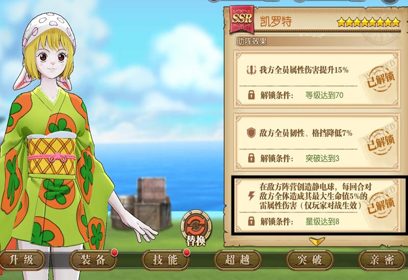 最后角色选用参考上图,除了babby5外,新小马哥可以保证续航,你也可以小马哥换巴托提供护盾。然后中间的三个输出角色,比较推荐的有:年轻老白、小菊、御田、青年雷利、新豹子。锦卫门其实也行,但生存太差了,你要是保得住有可以用。