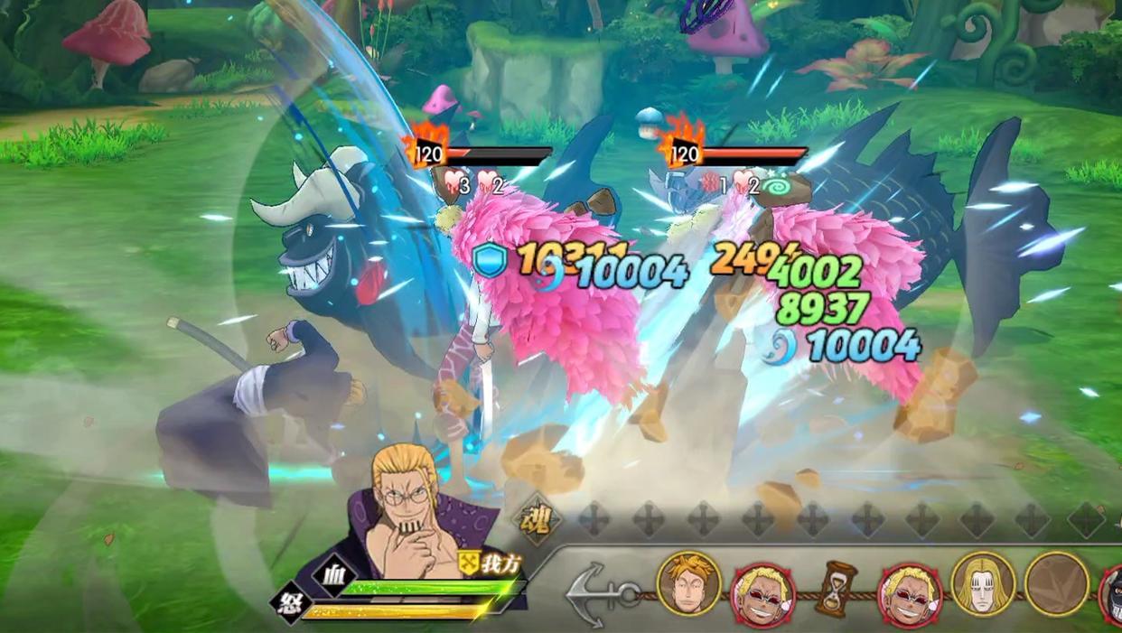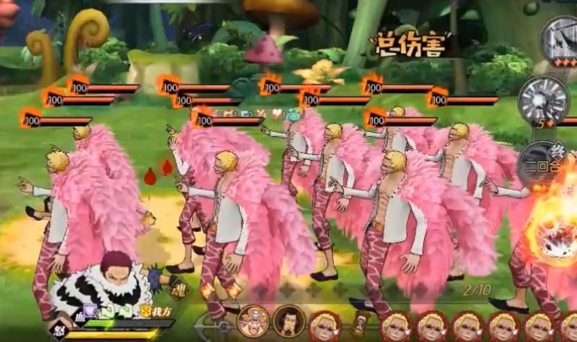 同时周遭还有几条小鱼,如果在第二回合前清掉,就会跑到我们这边来帮忙攻击,超过第二回合清掉就不会了。最后明哥本体被控制还会触发一波全屏明哥的攻击。
