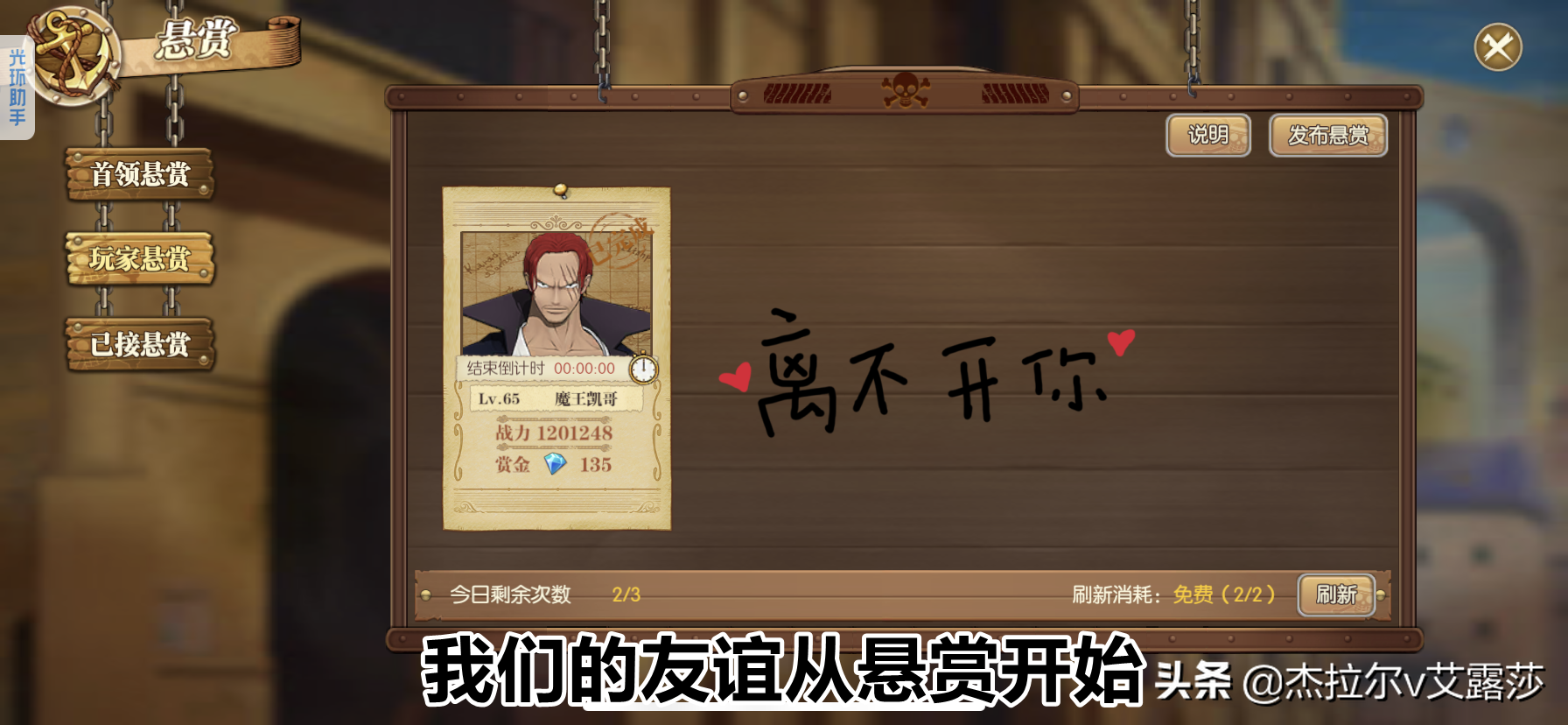 玩悬赏玩家,需要同区3个号,2个小号,小号悬赏小号,大号接悬赏,悬赏一次获得135蓝钻。3次就可以获得405蓝钻的1天收入啦,比历险来的更快。