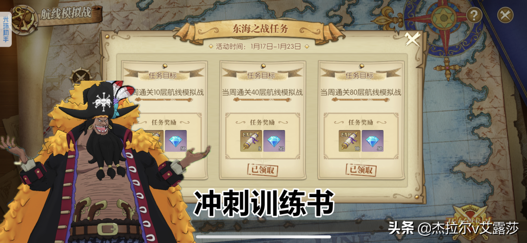 航线模拟战每周扫荡一次,能获得40本冲刺训练书与150蓝钻,核心是冲刺训练书太香,限定要提高面板属性,装备、宝石是固然重要,但人物的训练也是最重要的环节之一。