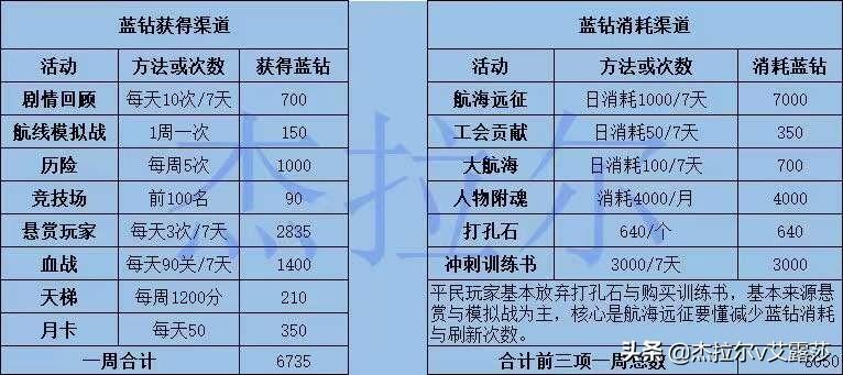 在2.0的版本中,蓝钻比彩钻更为重要了,因为不是每个玩家度有彩钻的,蓝钻成了平民玩家核心的资源,可以这么说,谁有大量蓝钻,基本就是掌握大量强者卷子的收入来源,所以蓝钻收入与消费都是至关重要,也成了某些工作室的热门生意。当然我这篇整理过后,也成工作室的法宝,希望我的专业解答,能帮到平民玩家。平民玩家对于手上的蓝钻还是适度消耗在航海远征。远征刷卷子虽好,但他是长期消耗的活动,所以我们蓝钻收入也得要跟得上,这样你的强者卷子才有保障性的进出。