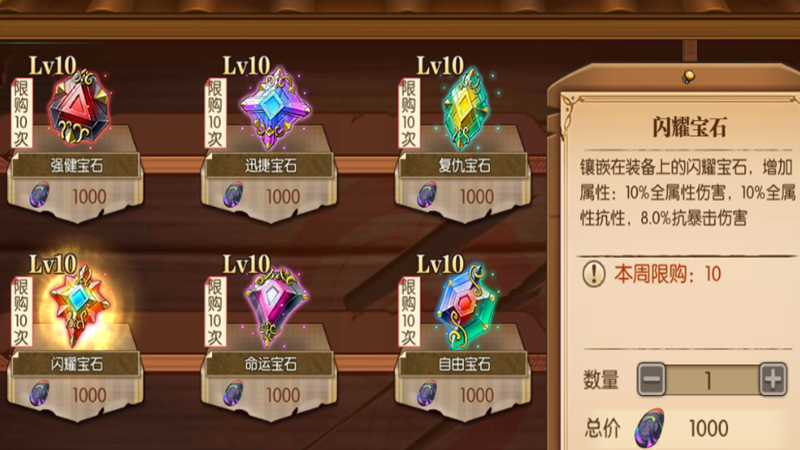 基础宝石推荐:攻击、速度、暴伤、生命、属伤、抗暴伤(命中)。