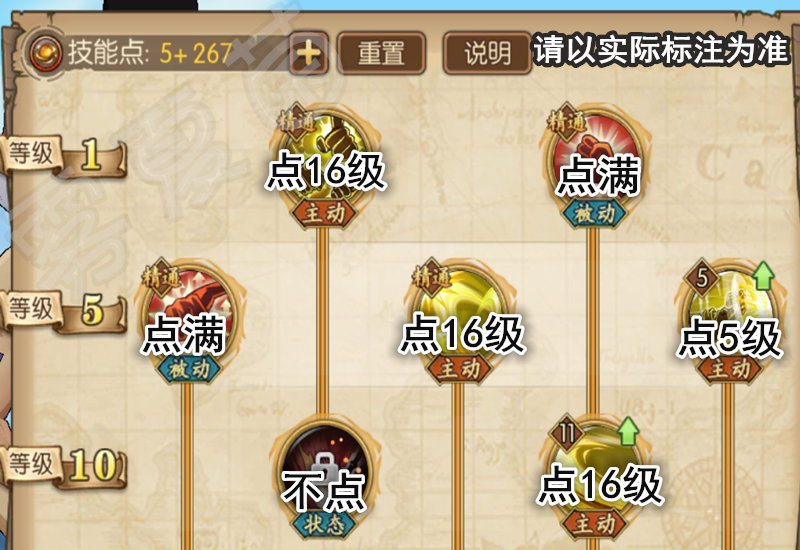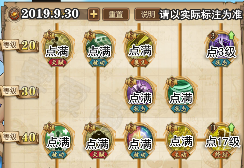 因为要用的技能比较多,导致最后还是无法点满,刨除奥义与使用频率较高的凯鸟,其他的小技能大都点到了16级。