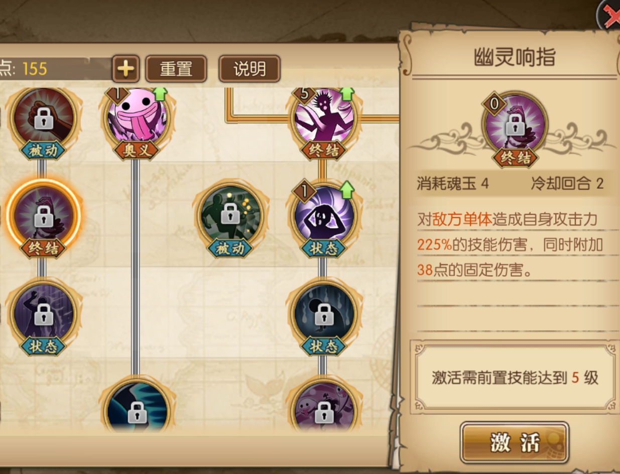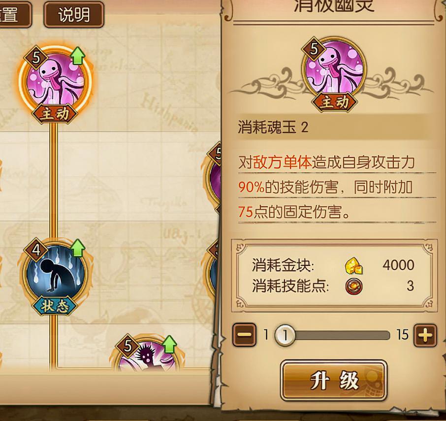 主动技能消极幽灵点满,状态点满。状态没有额外的魂玉消耗,所以可以放心点。