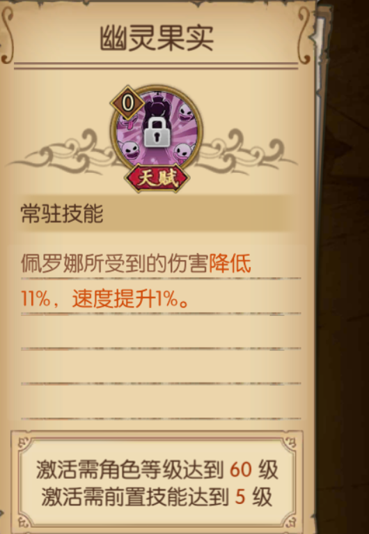 幽灵果实点满,佩罗娜的天赋技能,降低自身伤害与提高速度的。