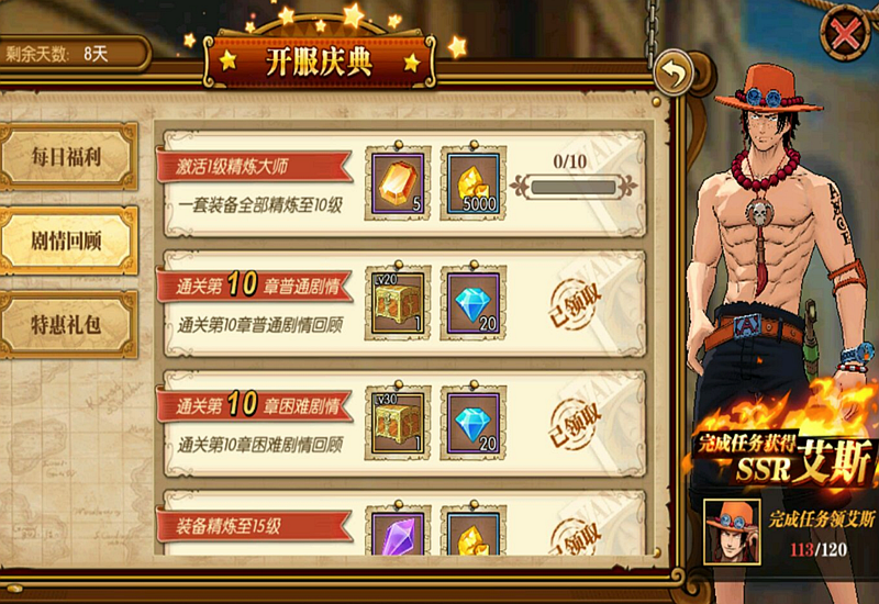 当你的阵容勉强凑出来了,那么接下来就要主攻日常任务以及各种主线、副本了。这个时期最重要的几个:日常任务、讨伐、角色传记、航海远征、剧情回顾、活动副本、竞技场。