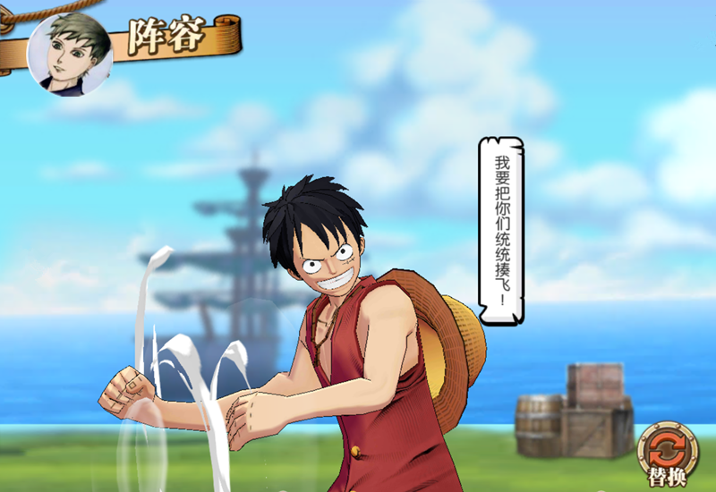 路飞的战斗,在热血沸腾的同时,还会掺杂着许多搞笑的元素,譬如打老沙时的水路飞。游戏中的路飞只是SR,虽然破天荒的有着3个天赋,但依旧比较捞,加上技能点不够,所以有的天赋点不起来。