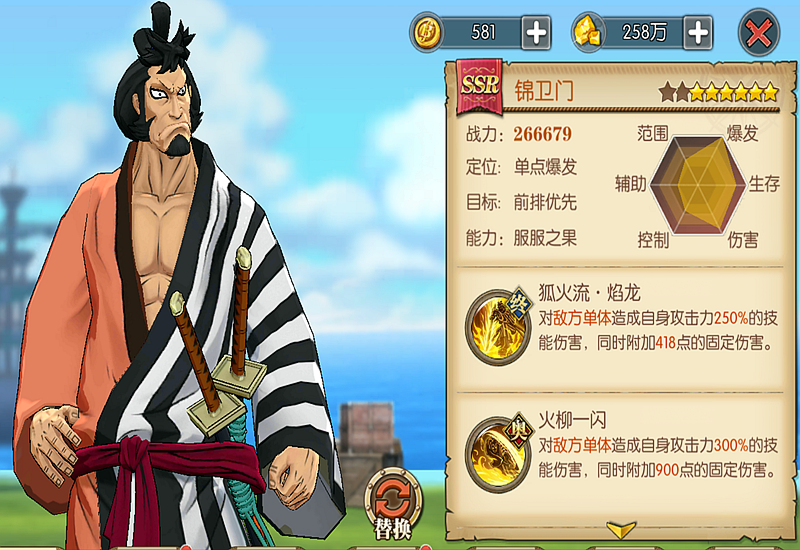包括我自己,也在抓紧培养锦卫门,过图的作用太大了。如果之前一直说的小马哥是恐怖输出,爆炸伤害。那锦卫门这里要再UP个一两倍甚至更高。