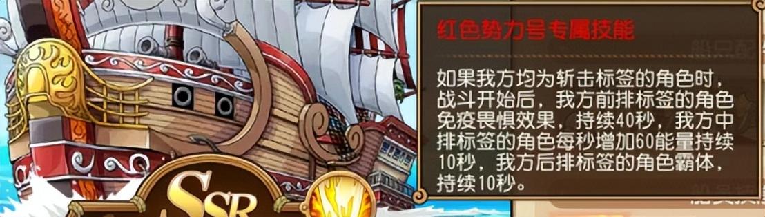 另外,作为老牌辅助人物罗的替代者,金狮子的强大是毋庸置疑的,尤其是配合船技的各项加成,把罗技能中的部分优秀设定和SSR红色势力号中“中排加能量”的设定糅合在一起,造就了金狮子和岛船与斩击系极高的匹配度,也标志着“能量斩”玩法的使用进入了全新的时代!