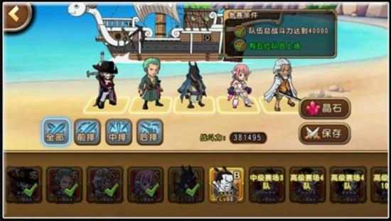 1、优先高级。前文说过,高级场的收益率是最高的,一旦获胜,除积分外还有10倍敌方战力的贝里。相比之下,下图中这种阵容打初级场,即使全胜,又能获得多少收益呢?