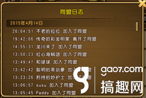 而同盟日志按钮,可以让同盟成员们清楚地知道同盟成员的变化情况,包括加入、离开、会长晋升成员等。