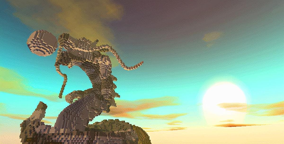 3、创造、建设将天马行空的想象用方块拼接成具体的模样,这是你展现创意的天堂。下图是熊宝同学和他的小伙伴们历时半个月完成的作品——飞龙在天!