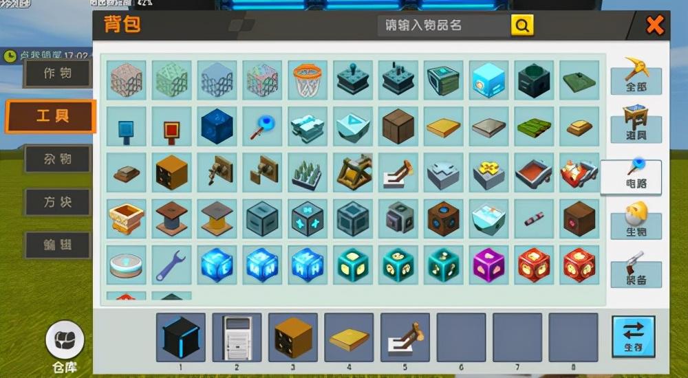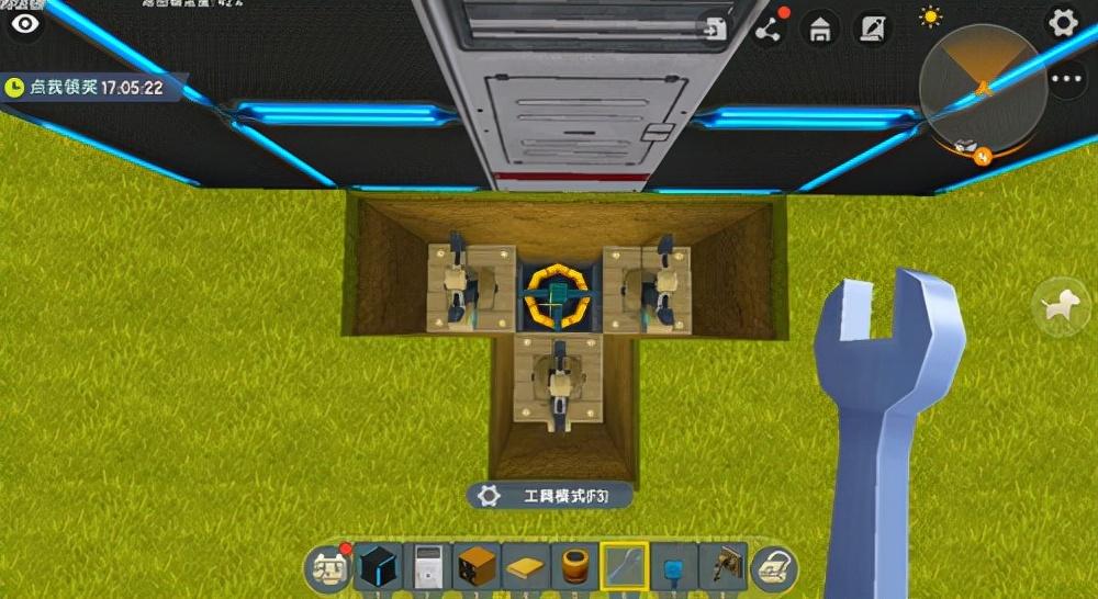 这些铁门打开需要电路道具,当你打开电路道具时,你会发现适用的道具极多,常用的却只有两款,第一个是在铁门旁边开关一个拉动开关,第二个是在铁门的正前方草块处,摆放一个感压板。这里想要触发陷阱,就需要第二个感压板道具。