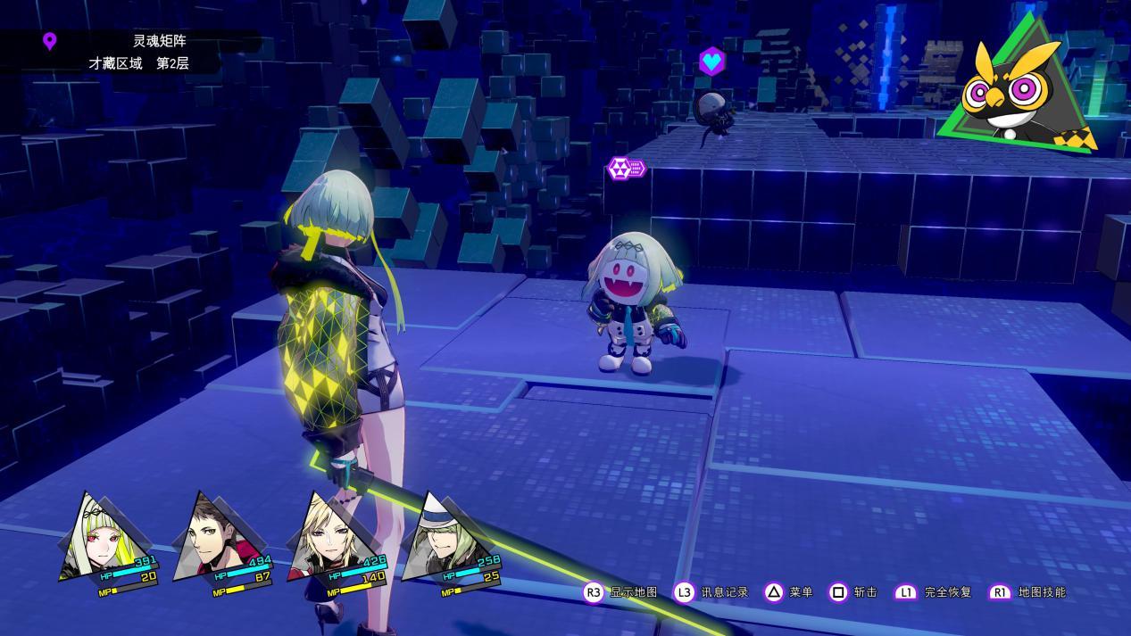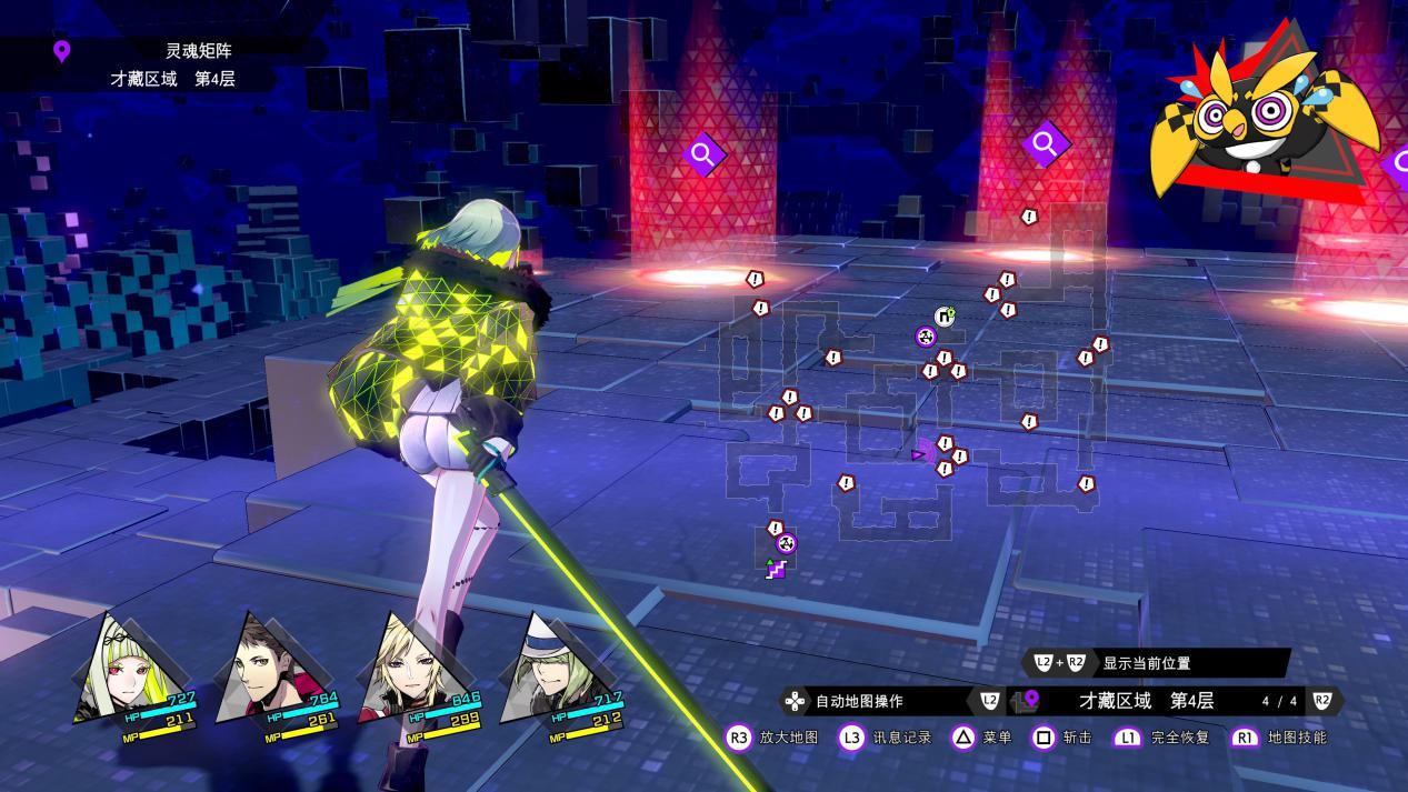 不过与在战斗中的比重下降相比,《灵魂骇客2》也赋予了恶魔们一些额外的职责。实际上,本作对于迷宫与地图的设计概念,属于较为老派的那一类——简单点说,它在构成上大量使用了类似的棱角结构与视觉效果,要求玩家在探索过程中高强度地使用地图查看自己的所在位置,配合上实用性极佳的地图自动绘制功能,让它的内核充满了老式的RPG味道。要不是敌人的出现采用了明雷形式,我真的要把本作错认为一款以“画地图”为乐趣的DRPG了。