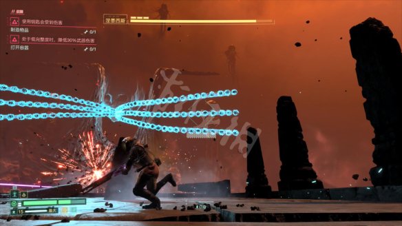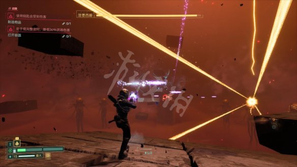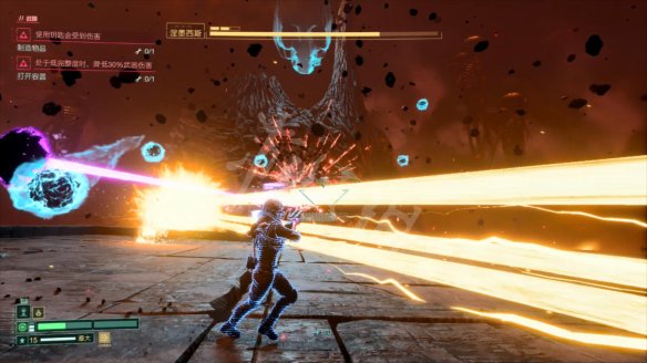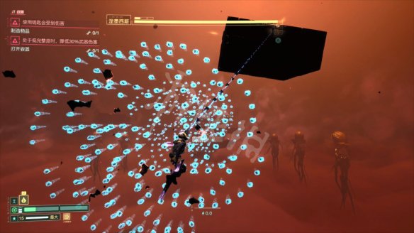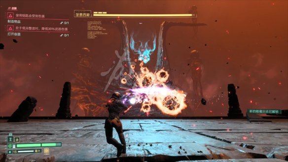 第二阶段BOSS会在多个平台之间移动躲避弹幕的同时多加注意BOSS动向,注意躲避衍生物释放的激光。