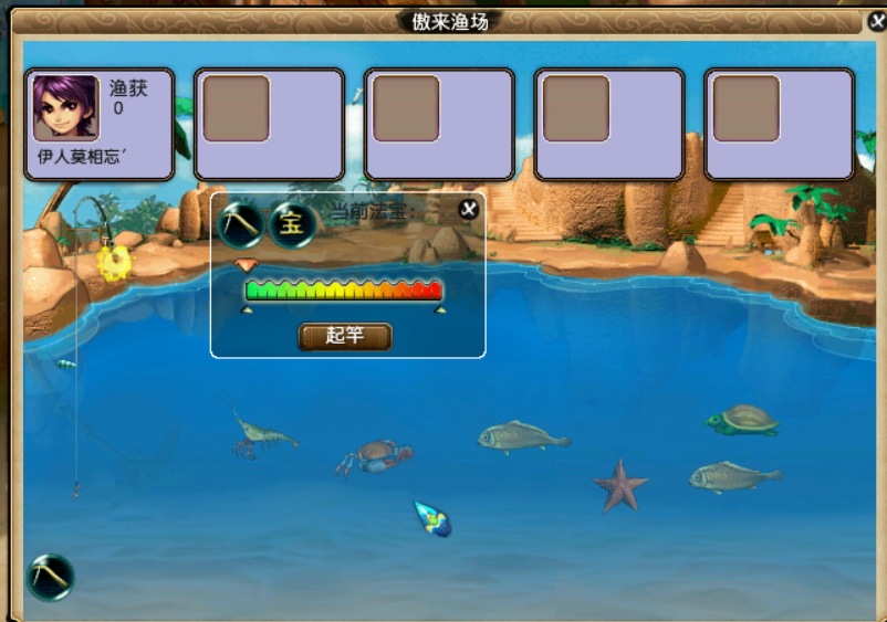 组队钓鱼中,如果某个玩家连续钓上5条鱼,会进入神钓状态,接下来每次成功钓鱼会钓上2条,直到失败退出。
