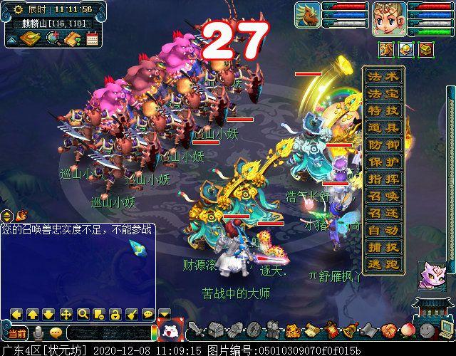 对话后切入第二场战斗,小怪一开始只会平砍,其中两只变异野猪精有几率打两次,主怪有几率连击四次。第二回合,左边变异猪为ST,开始变身;右边变异猪为MW,略有输出,所有怪物均可封可毒,但怪物血量依旧较多,胜利后可得753800经验。
